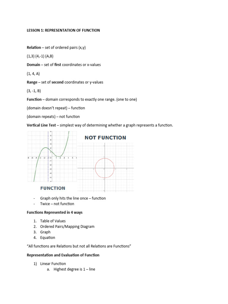 Vertical Line Test – simplest way of determining whether a graph represents a function.