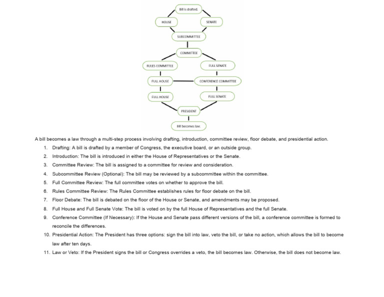 A bill becomes a law through a multi-step process involving drafting, introduction, committee review, floor debate, and presidential
