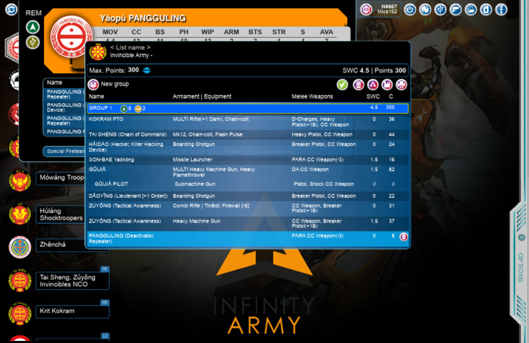 Infantry Wildcard trooper. The Pangguling FTO can be part of any Fireteam of this Sectorial Army.