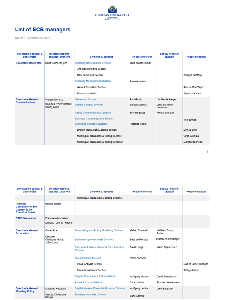 directorates deputies, directors Divisions & sections Heads of division division Heads of section