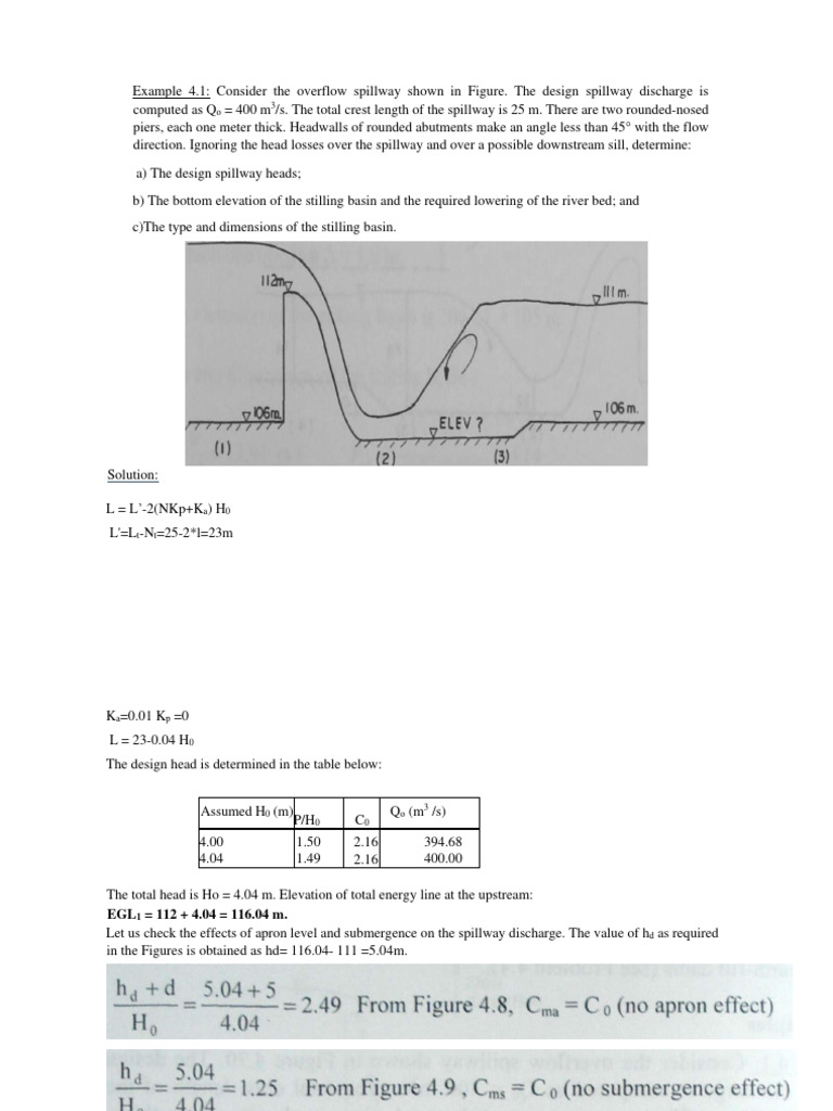 Example 4.1: Consider the overflow spillway shown in Figure.