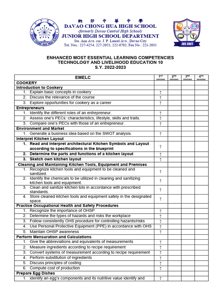 ENHANCED MOST ESSENTIAL LEARNING COMPETENCIES