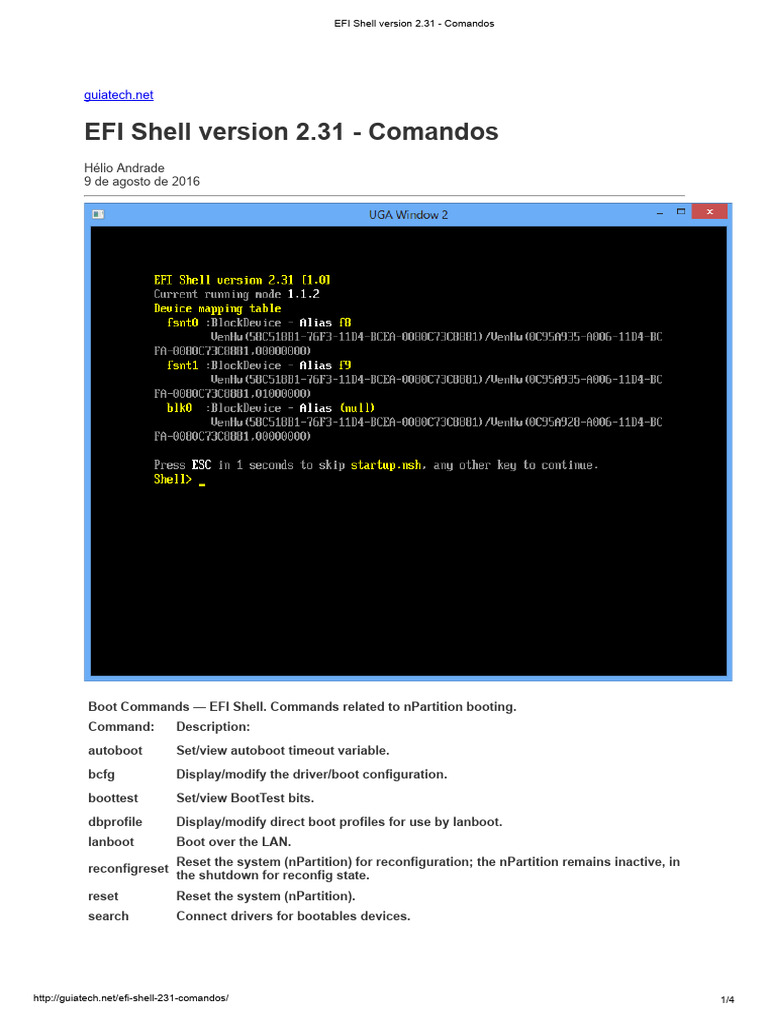 EFI Shell version 2.31 - Comandos