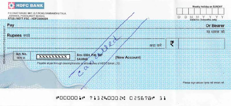 HDFC Cancel Cheque