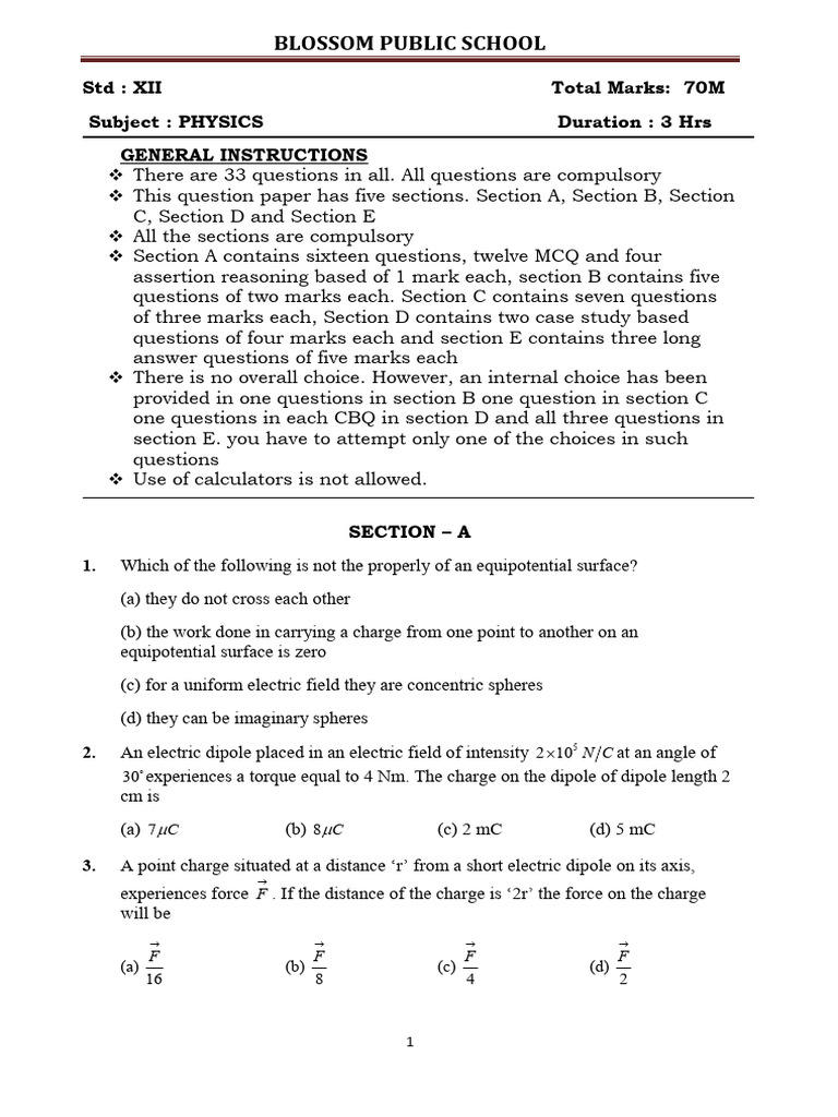 16. Assertion (A) When radius of a current carrying loop is doubled its magnetic