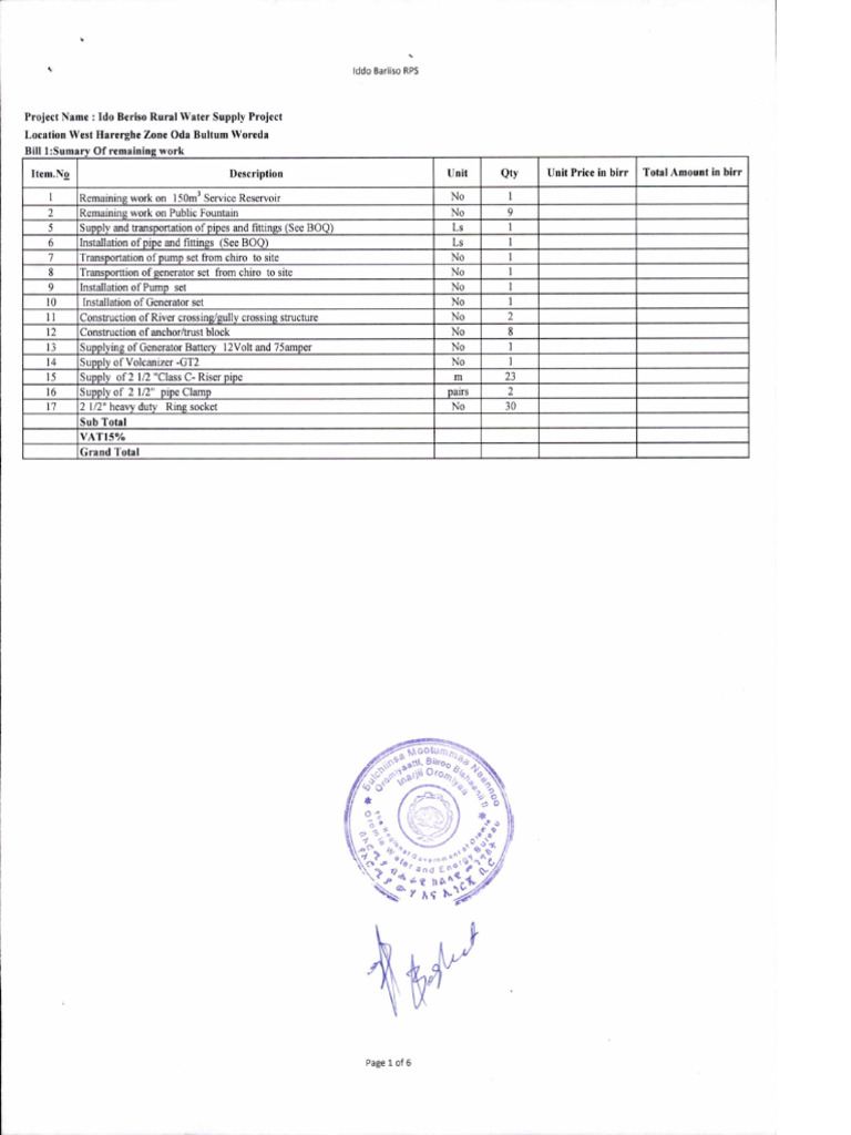 Project Name : Ido Berlso Rural Water Supply Projet