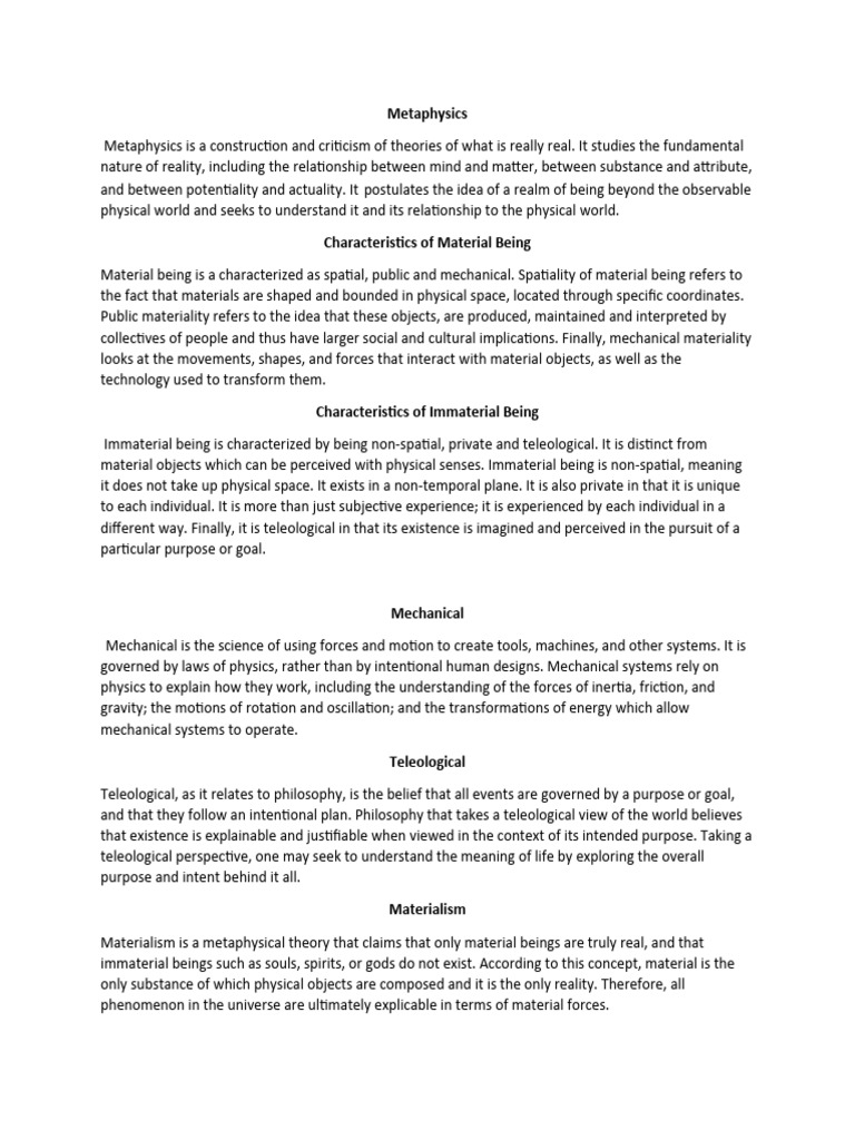 immaterial beings such as souls, spirits, or gods do not exist. According to this concept, material is the