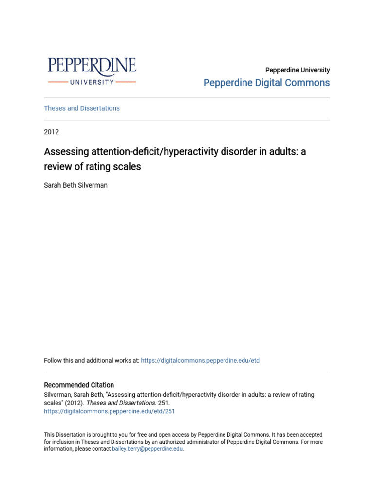 Silverman, Sarah Beth, "Assessing attention-deficit/hyperactivity disorder in adults: a review of rating