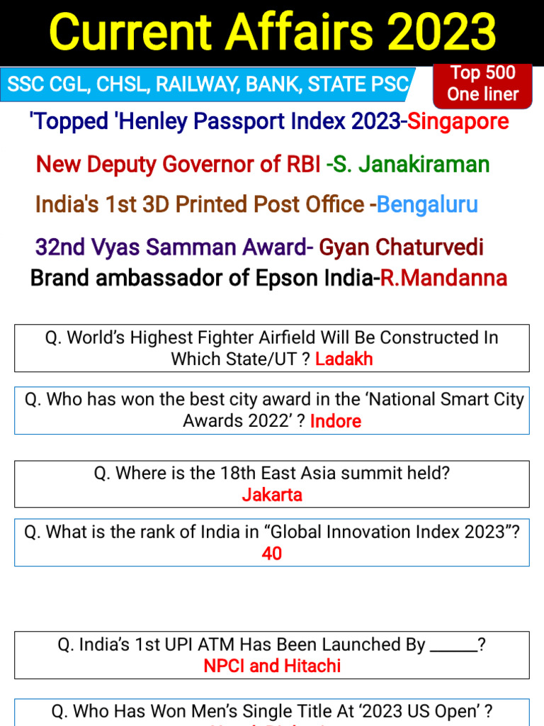 Q. Which country will host the FIFA U-17 World Cup 2023?