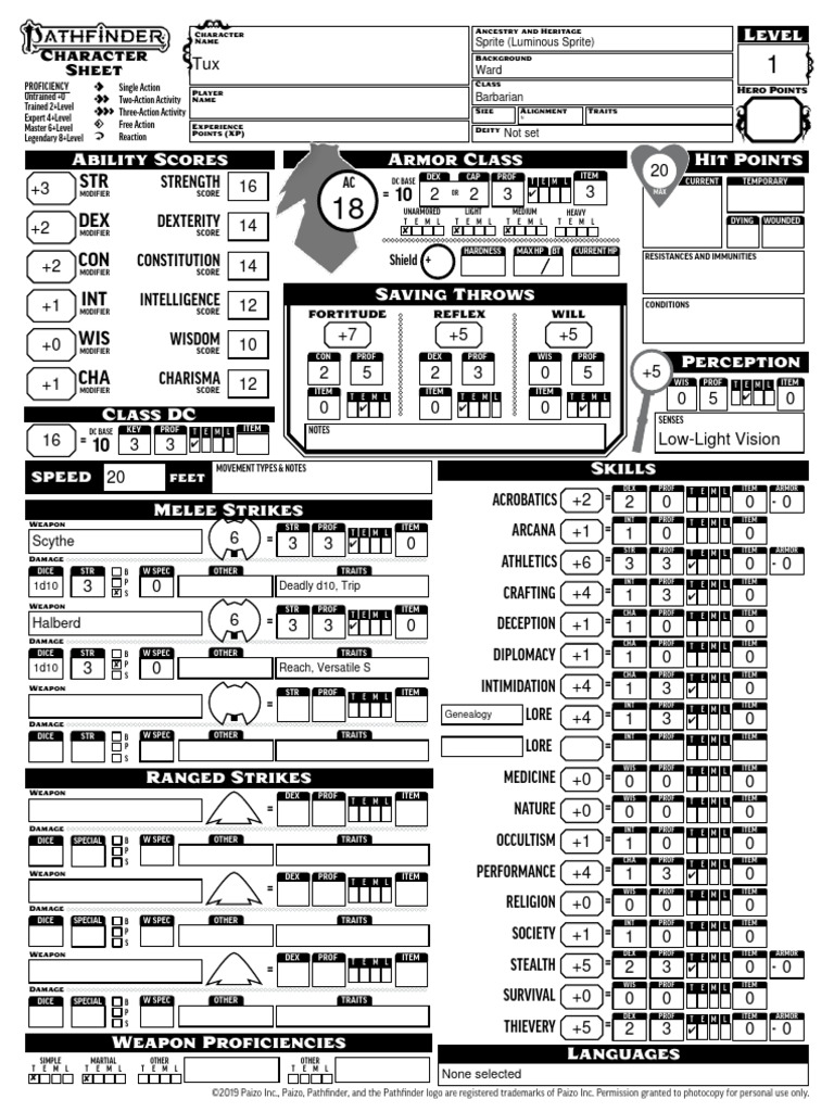 ©2019 Paizo Inc., Paizo, Pathfinder, and the Pathfinder logo are registered trademarks of Paizo Inc. Permission granted to photocopy for personal use only.