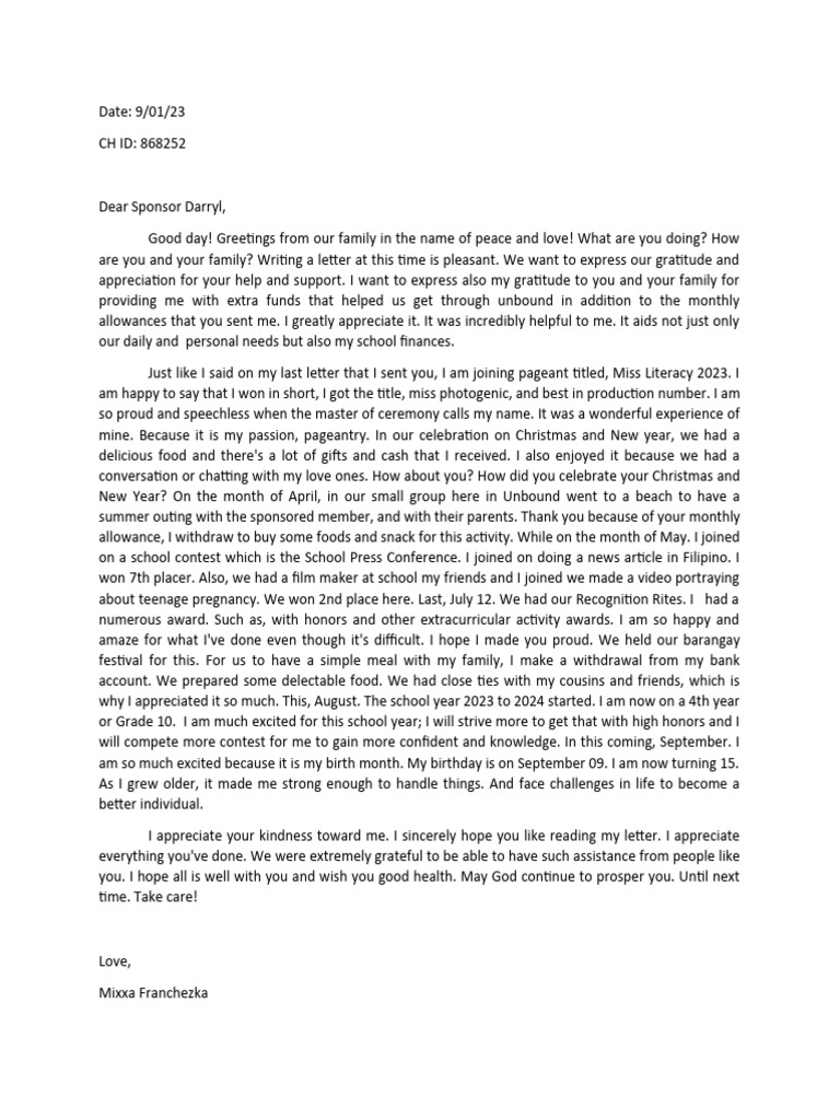 Just like I said on my last letter that I sent you, I am joining pageant titled, Miss Literacy 2023. I