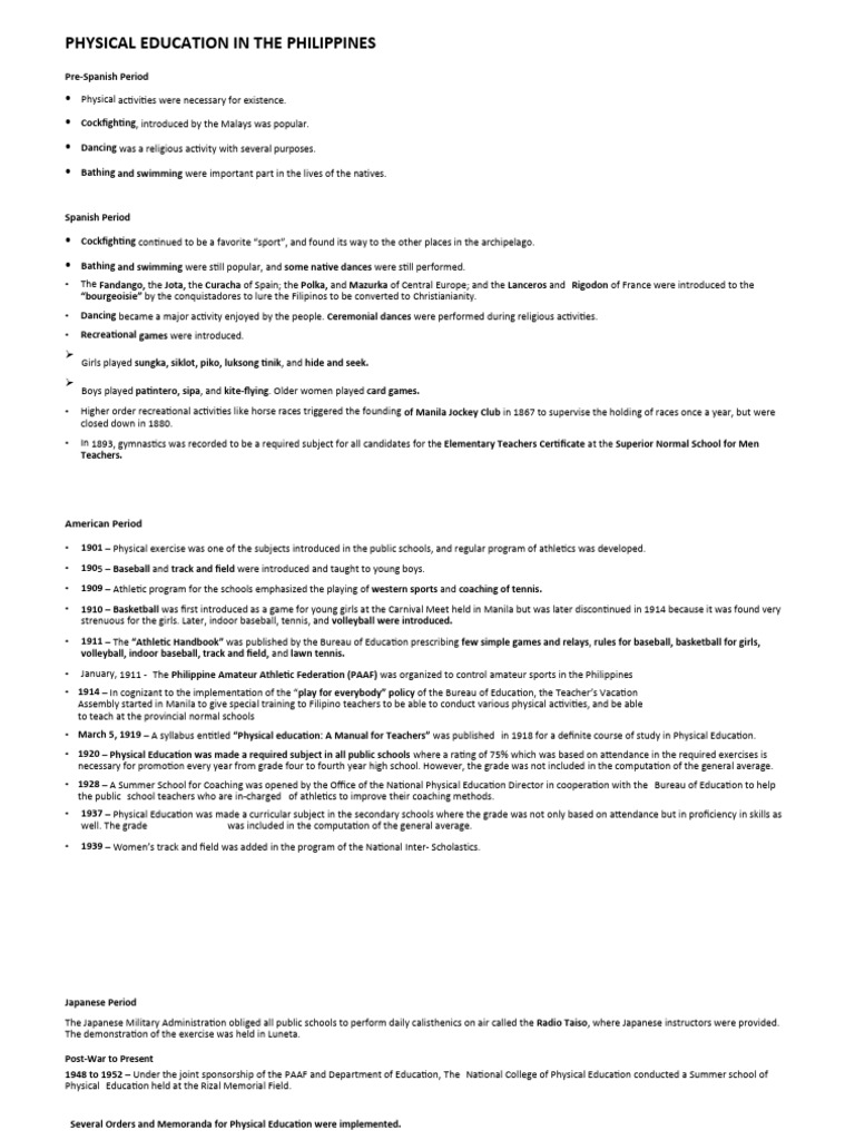 • 1920 – Physical Education was made a required subject in all public schools where a rating of 75% which was based on attendance in the required exercises is