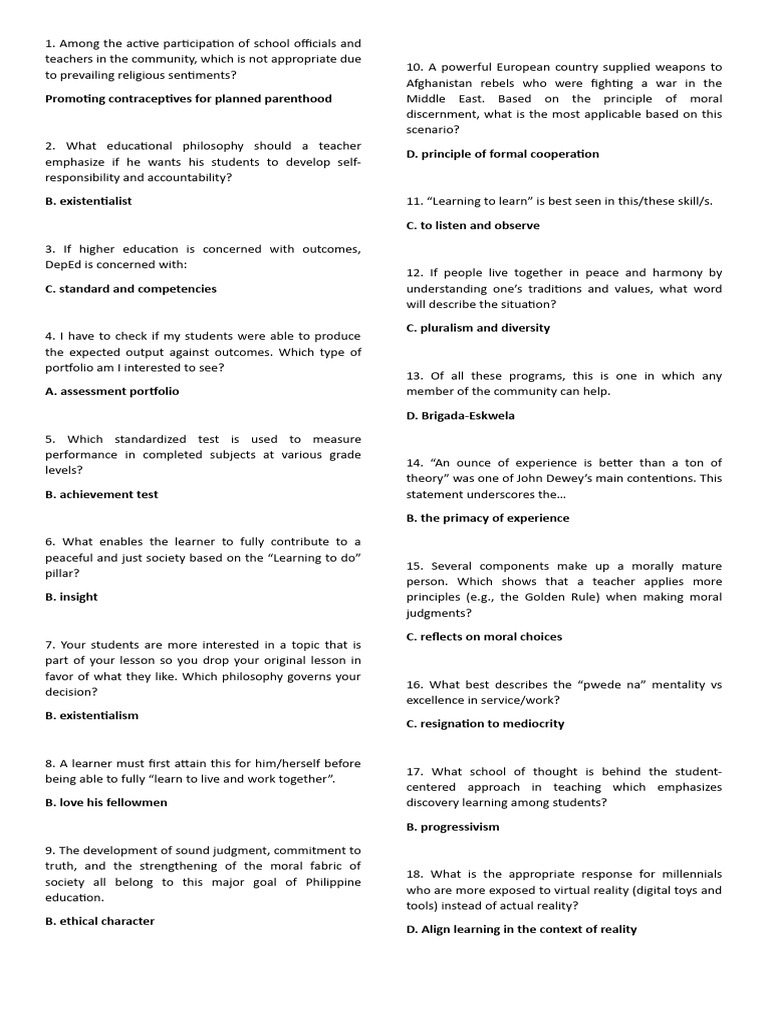 B. existentialist 11. “Learning to learn” is best seen in this/these skill/s.