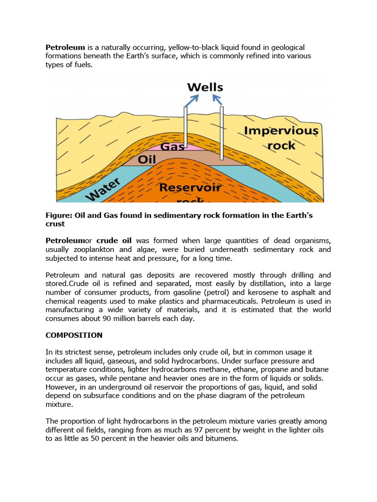 Petroleum is a naturally occurring, yellow-to-black liquid found in geological
