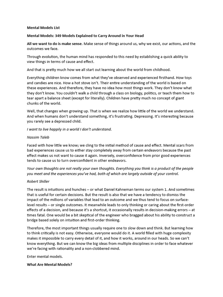 se. Essentially, this is a list of models, frameworks, thinking tools, and mental representations. Then