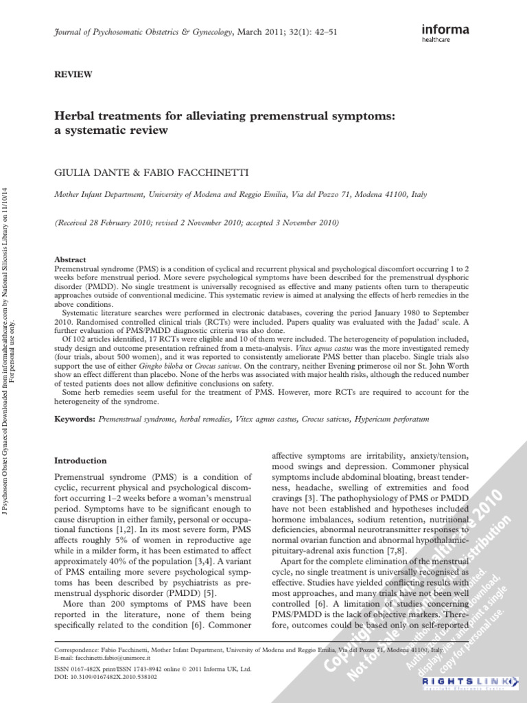 Keywords: Premenstrual syndrome, herbal remedies, Vitex agnus castus, Crocus sativus, Hypericum perforatum