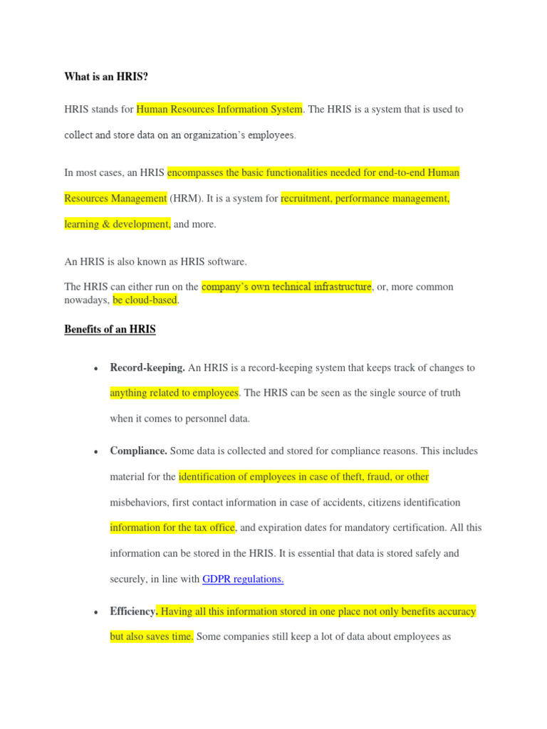 In most cases, an HRIS encompasses the basic functionalities needed for end-to-end Human