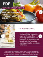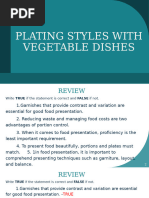 3. Main item in the center with neat piles of vegetables carefully arranged around.