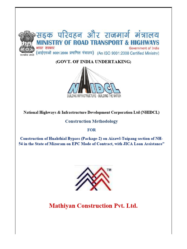 AIZAWL-TUIPANG NH 54 ROAD PROJECT (HNAHTHIAL BYPASS PACKAGE-2)