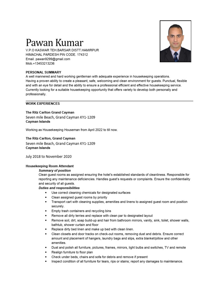 A well mannered and hard working gentleman with adequate experience in housekeeping operations.