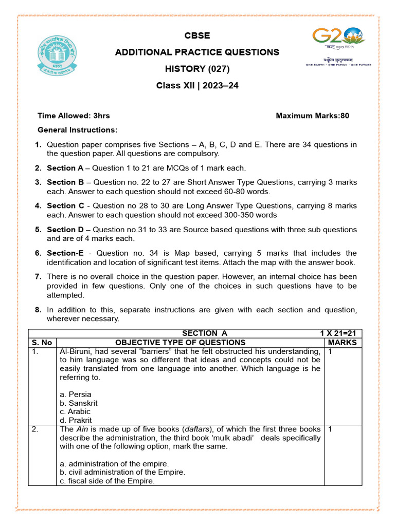 1. Question paper comprises five Sections – A, B, C, D and E. There are 34 questions in