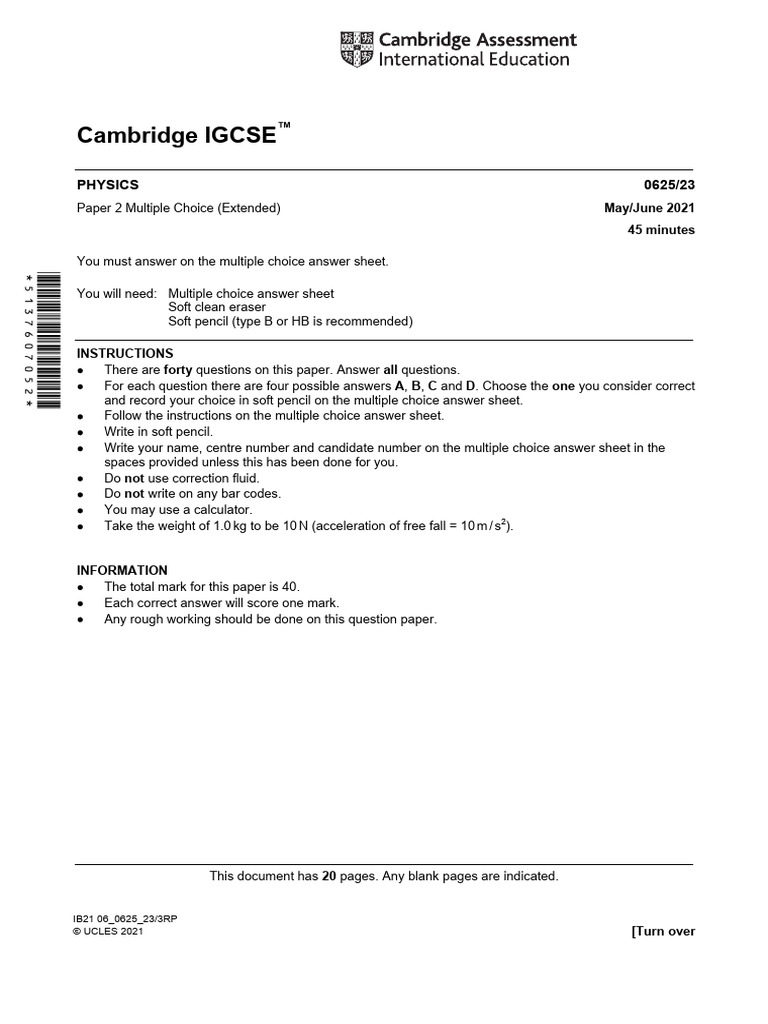 © UCLES 2021 0625/23/M/J/21