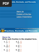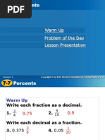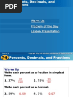 Write each fraction or decimal as a percent. Write each percent as a decimal and as a