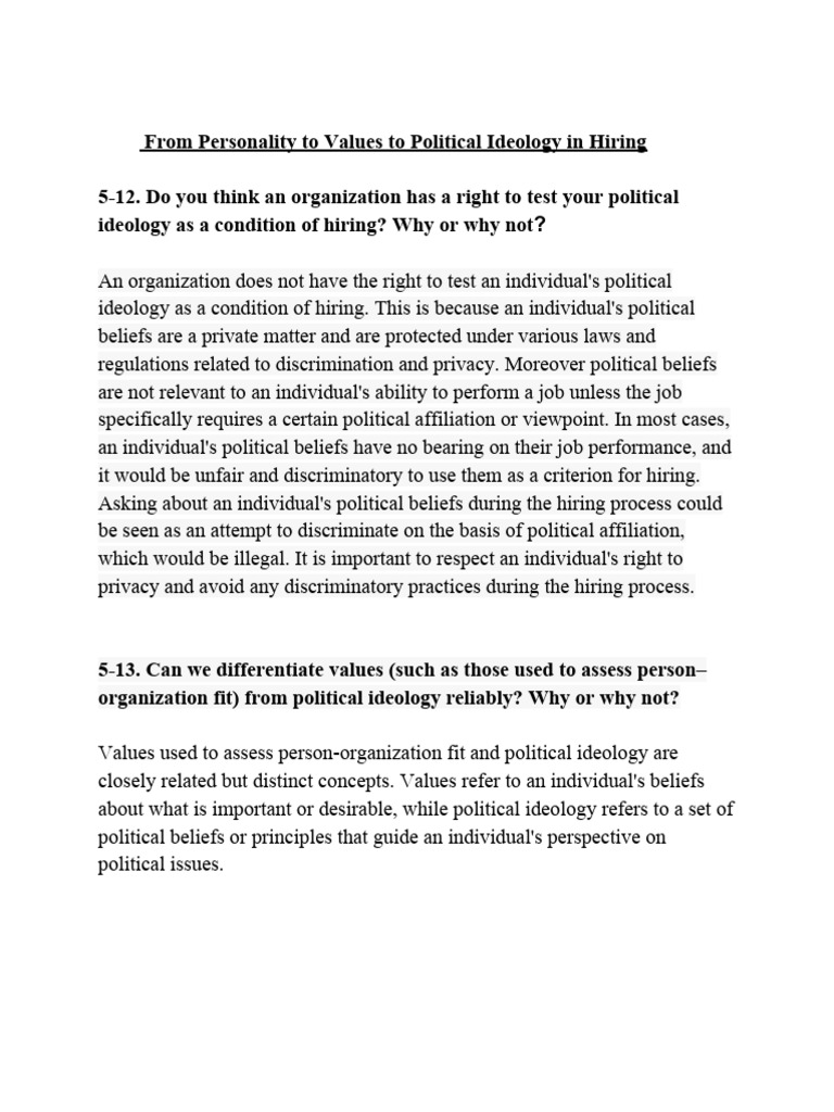 From Personality to Values to Political Ideology in Hiring