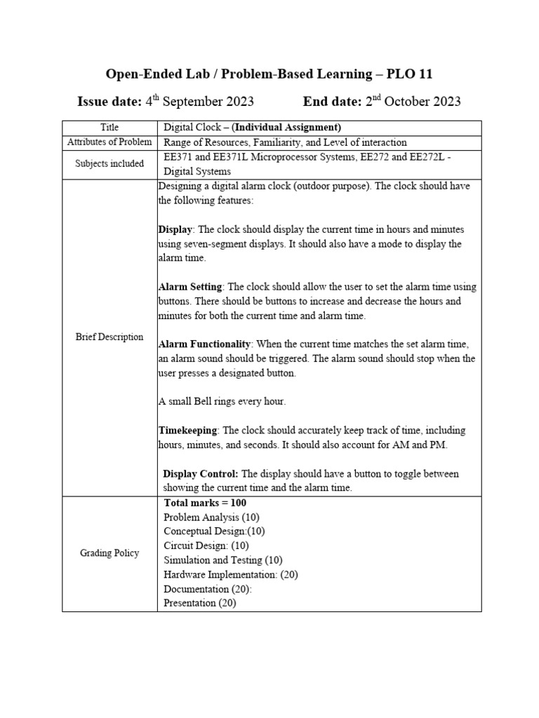 Presentation(5) Present their digital alarm clock designs to the class,