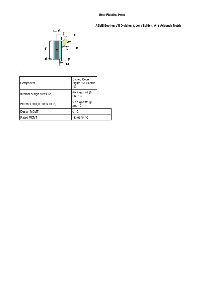 Internal design pressure, P: 40.8 kgf/cm2 @ 260 °C