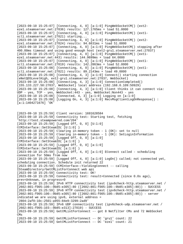 [2023-09-10 15:25:08] [Logging On, 4, 3] [a:1:0] RecvMsgClientLogOnResponse() :