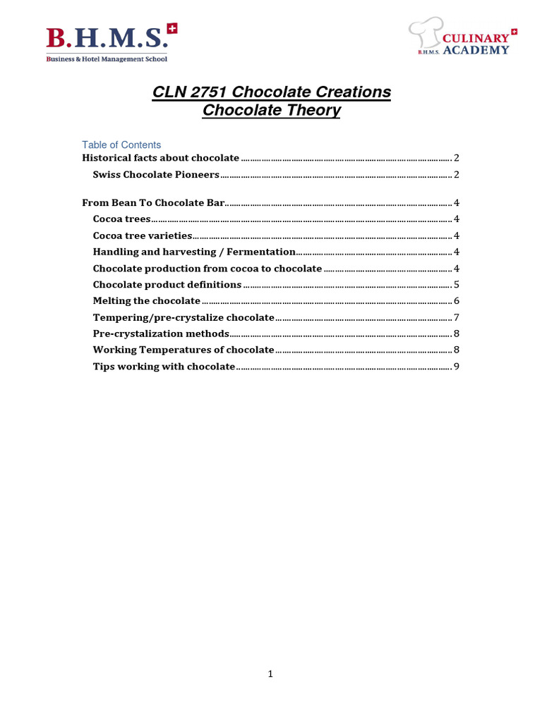Swiss Chocolate Pioneers ..................................................................................................... 2