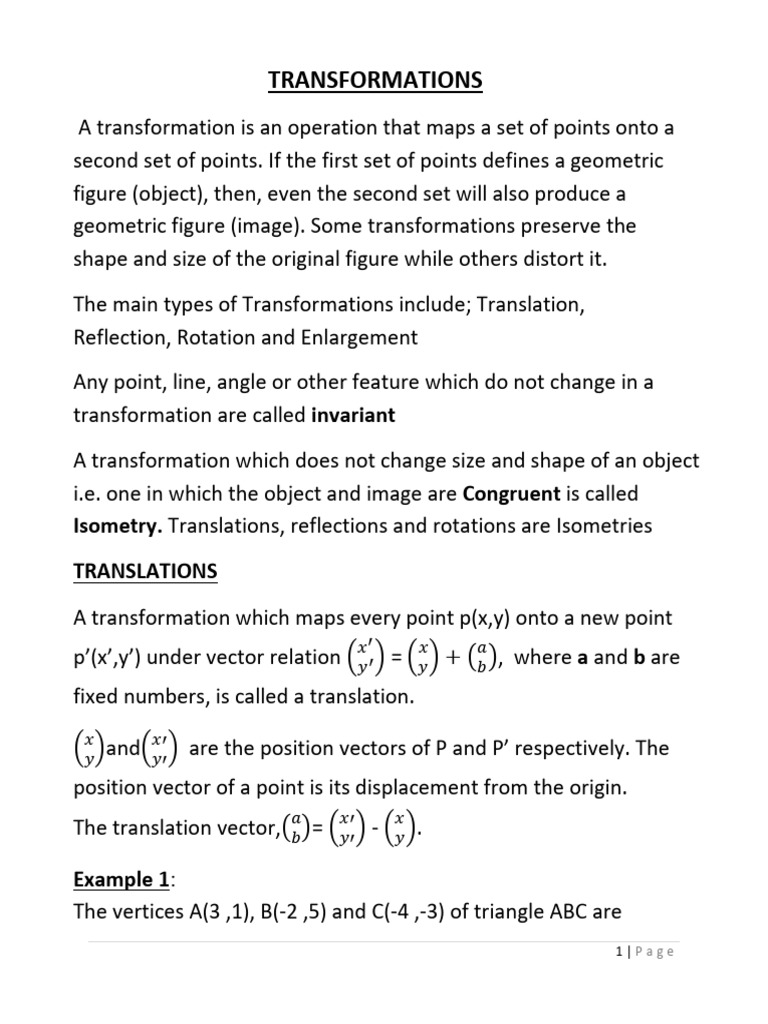 mapped onto A’, B’ and C’ of a triangle A’B’C’respectively by a translation T