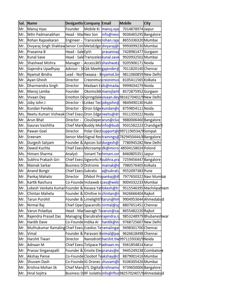 Name Desigantio Company Email Mobile City