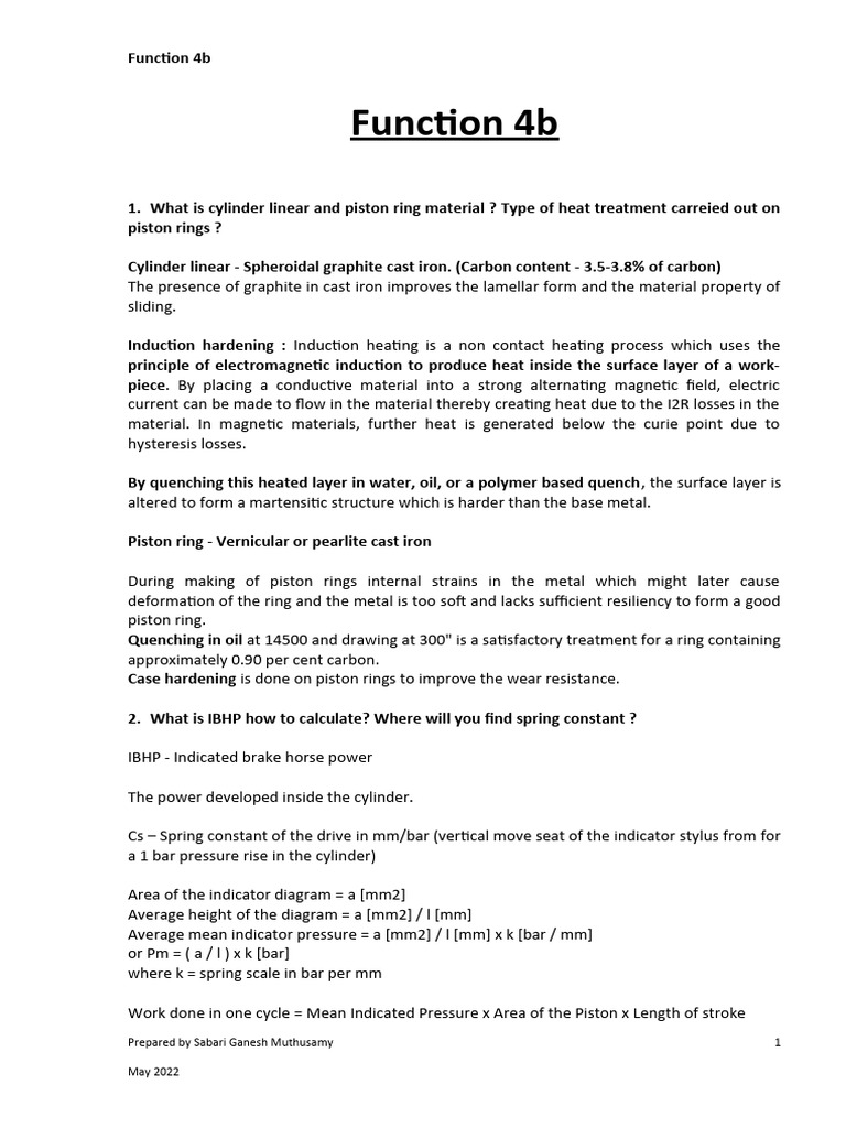 1. What is cylinder linear and piston ring material ? Type of heat treatment carreied out on