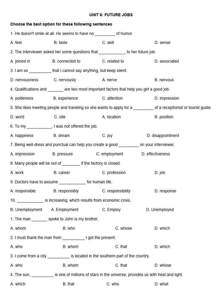 UNIT 6: FUTURE JOBS