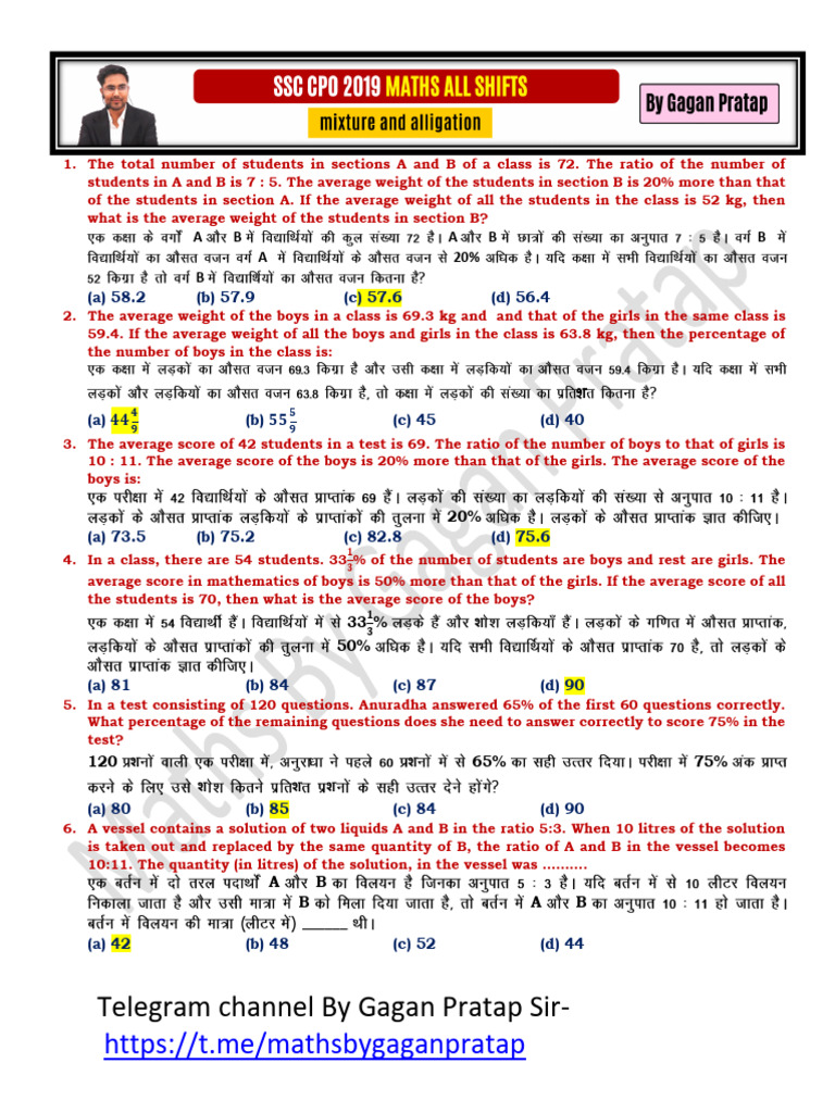 5. In a test consisting of 120 questions. Anuradha answered 65% of the first 60 questions correctly.