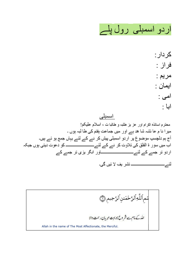 اب میں سور ۃ الفلق کی تالوت کر نے کے لئےـــــــــــــــــــــــــــ کو دعوت دیتی ہوں جبکہ