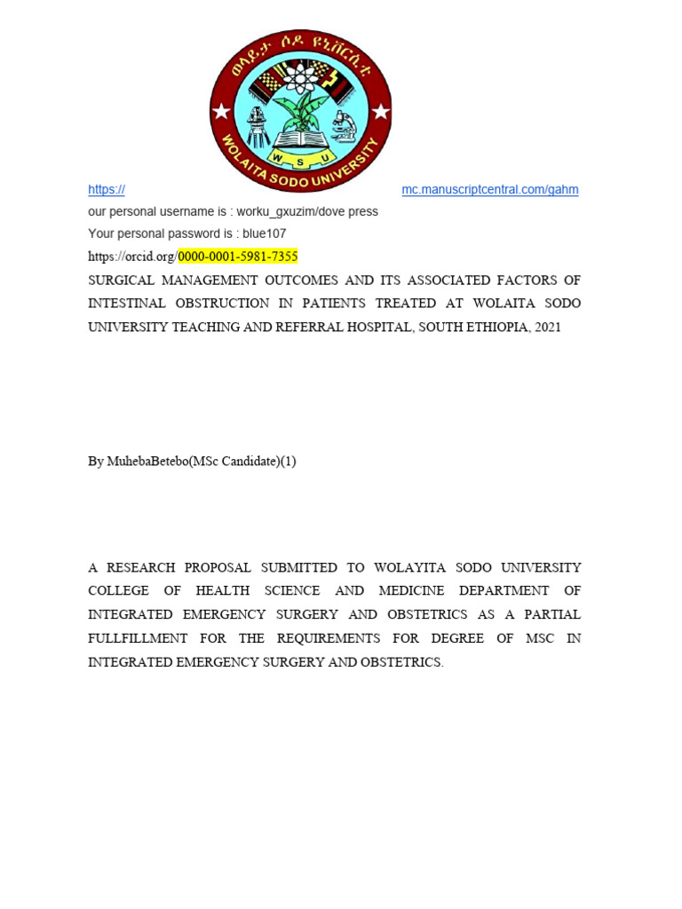 12. Derseh T. Management Outcome and Associated Factors among Intestinal Obstruction