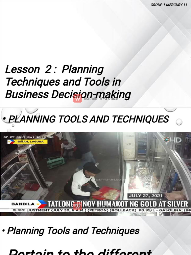 • DIFFERENT PLANNING TOOLDS AND TECHNIQUES
