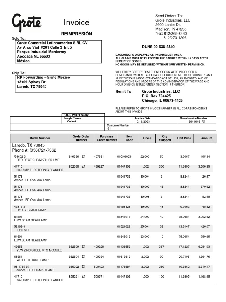 PLEASE REFER TO GROTE INVOICE NUMBER IN ALL CORRESPONDENCE