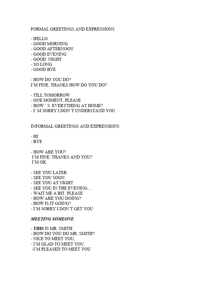 FORMAL GREETINGS AND EXPRESSIONS