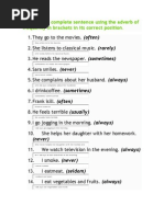 Frequency adverbs: always, usually, often, sometimes, rarely, never