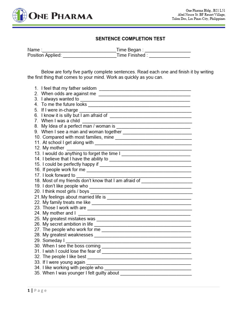 SENTENCE COMPLETION TEST