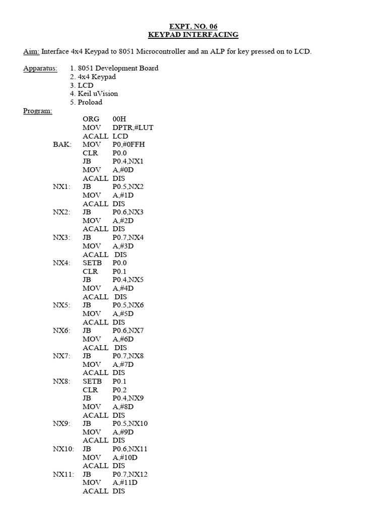 Aim: Interface 4x4 Keypad to 8051 Microcontroller and an ALP for key pressed on to LCD.