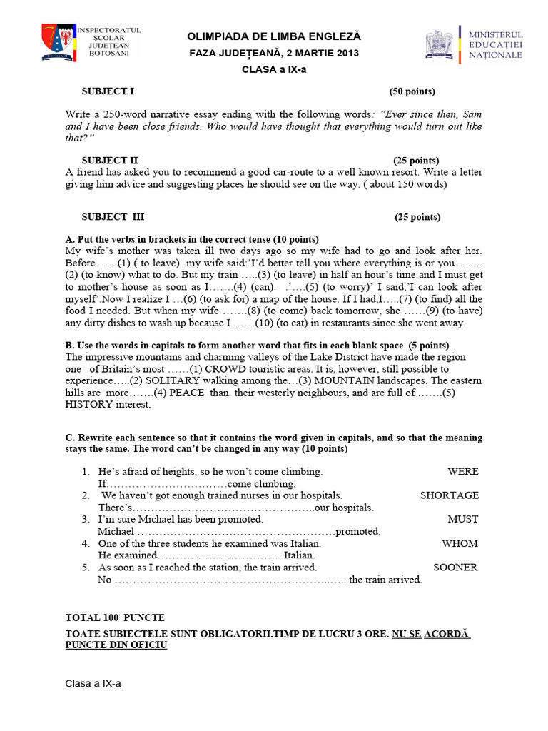 OLIMPIADA DE LIMBA ENGLEZĂ