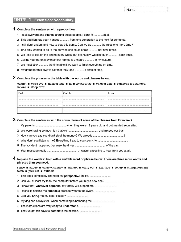 UNIT 1 Extension: Vocabulary