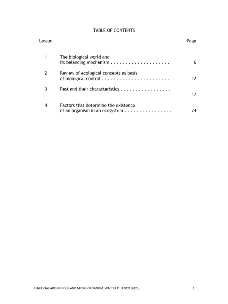 BENEFICIAL ARTHROPODS AND MICRO-ORGANISM: WALTER C. JATICO (2023) 3