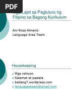 pagtuturo ng Filipino at Ingles ay napag- ukulan ng diin sa mga paaralan sa lahat ng kapantayan nito. Dahil sa ang layunin