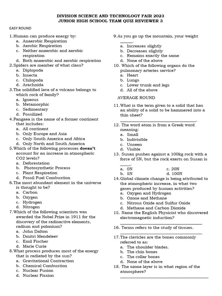 JUNIOR HIGH SCHOOL TEAM QUIZ REVIEWER 3